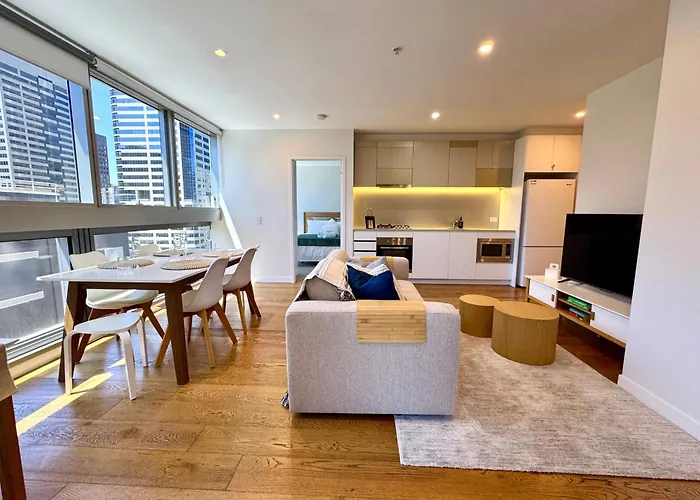 Crown Towers Melbourne se trouve à environ 25 minutes de marche, tandis que la Salle de concert Festival Hall se trouve à proximité d'Appartement Central City Escape - Skyline Views, Pool & Gym. L'appartement se situe dans la localité de "central des affaires de Melbourne".